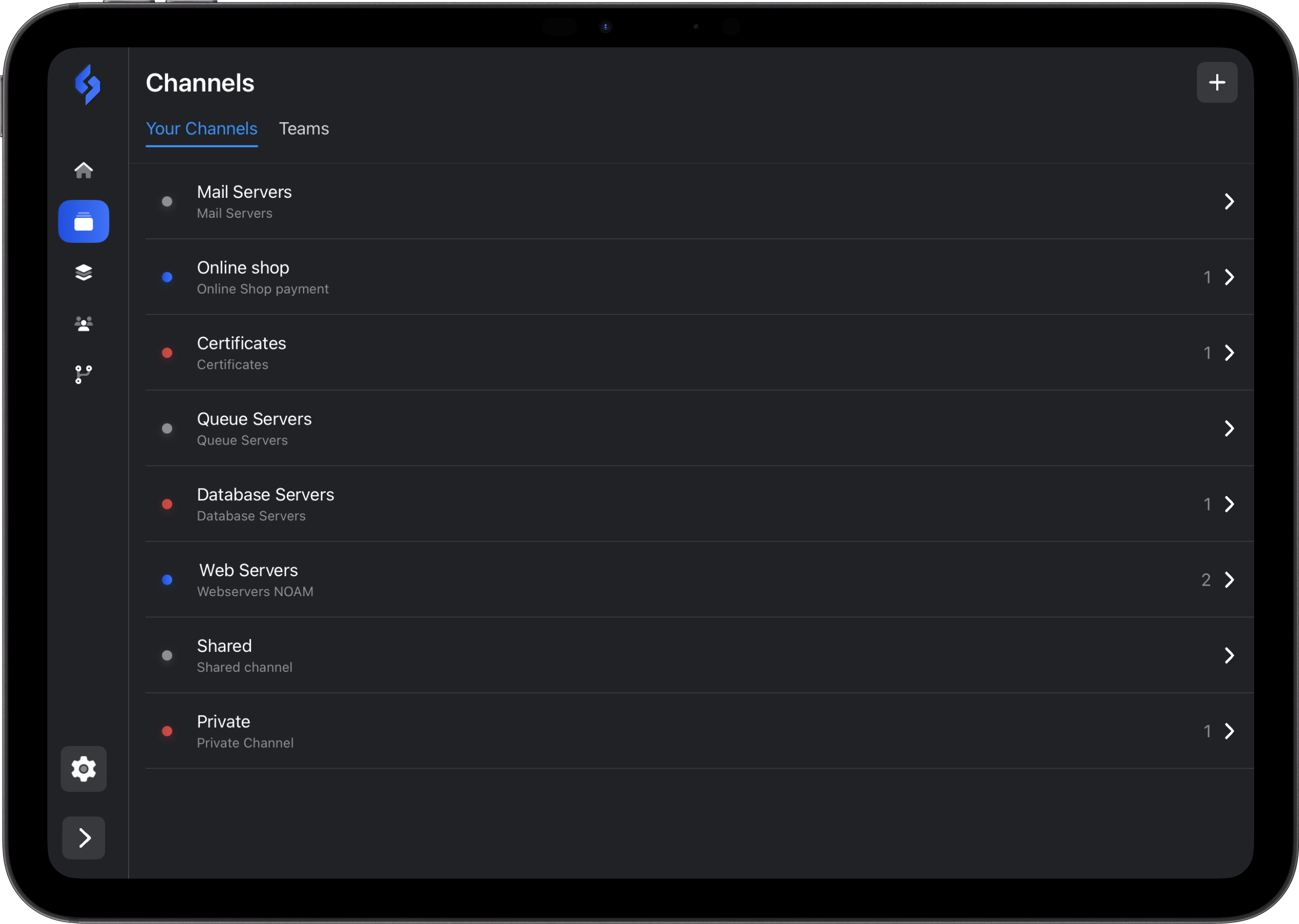 Keep your alerts organized and your focus sharp. SignalGrid allows you to categorize notifications into dedicated channels—from server health to team updates. The tablet-optimized overview provides a bird’s-eye view of your activity, making it easy to adjust settings or oversee your team’s notification flow at a glance.
