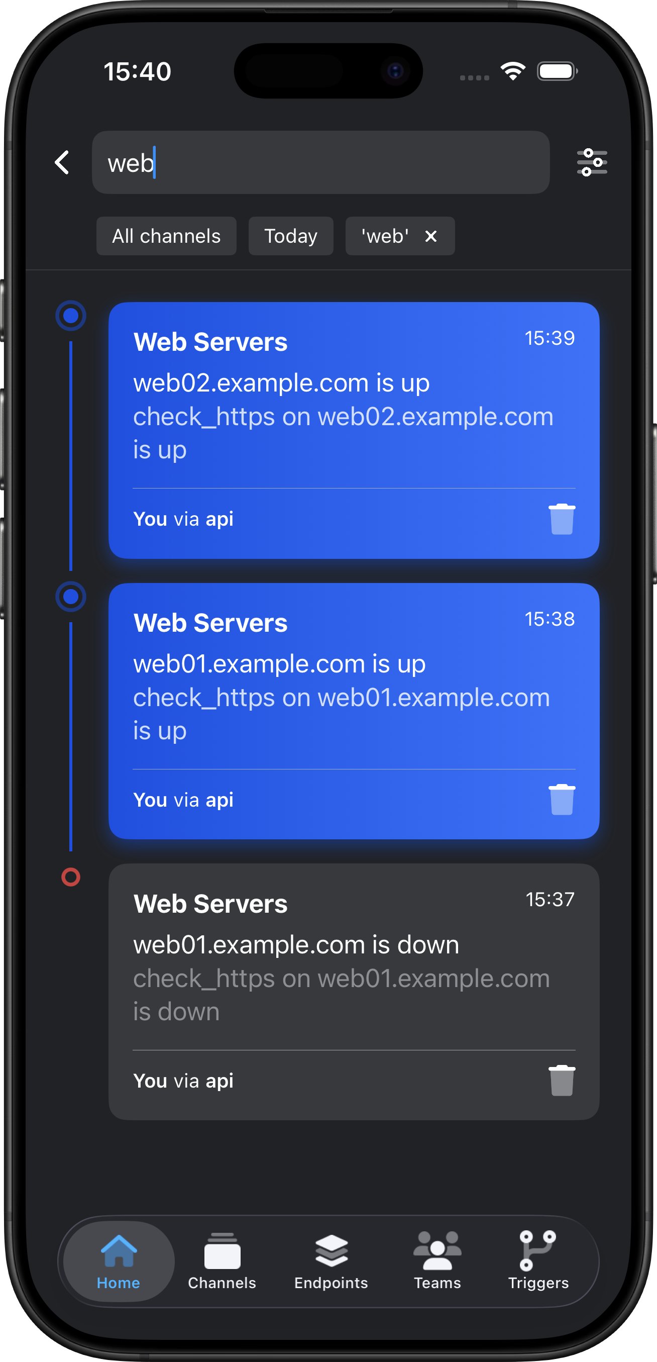 Read moreQuickly locate any past alert with our powerful global search. Whether you need to verify a system log from last week or filter alerts by a specific project, our mobile-optimized search engine delivers results in milliseconds, keeping your entire history accessible from anywhere.